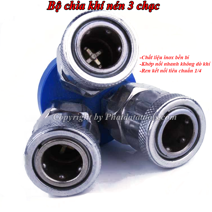 Bộ Chia Khí Nén 3 Chạc chuyên dụng chia nguồn khí (máy nén khí,bình tích khí...)ra nhiều thiết bị để có thể sử dụng cùng lúc,không mất công tháo lắp nhiều.