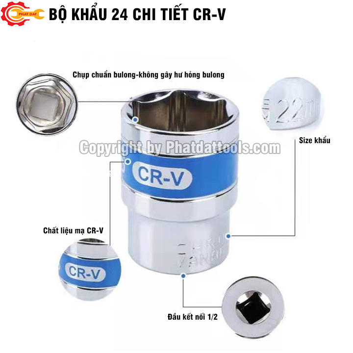 Thông số kĩ thuật Bộ Khẩu 24 Chi Tiết Mạ CR-V Không Gỉ: