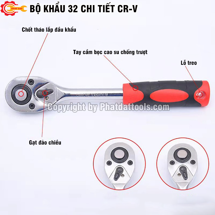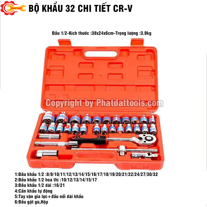 Thông số kĩ thuật Bộ Khẩu Tuýp Đài Loan Đa Năng 32 Chi Tiết Cao Cấp Không Gỉ: