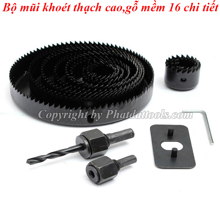 Tặng 50.000₫ mua hàng khi đăng ký làm thành viên Phát Đạt, áp dụng khi mua Online.Bộ mũi khoét chuyên dùng với thạch cao và gỗ mềm như thông, keo và ván công nghiệp Kích cỡ 13 mũi đa dạng: Ø19, Ø23, Ø25, Ø28,Ø32,Ø38, Ø44, Ø54, Ø64,Ø76,Ø89,Ø102,Ø127(mm) Chất liệu: Hợp kim siêu cứng sơn tĩnh điện chống rỉ