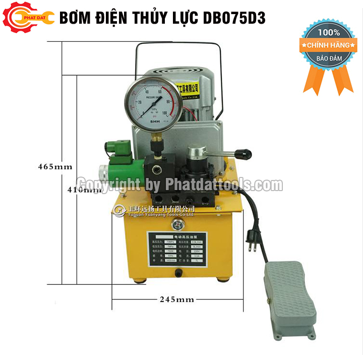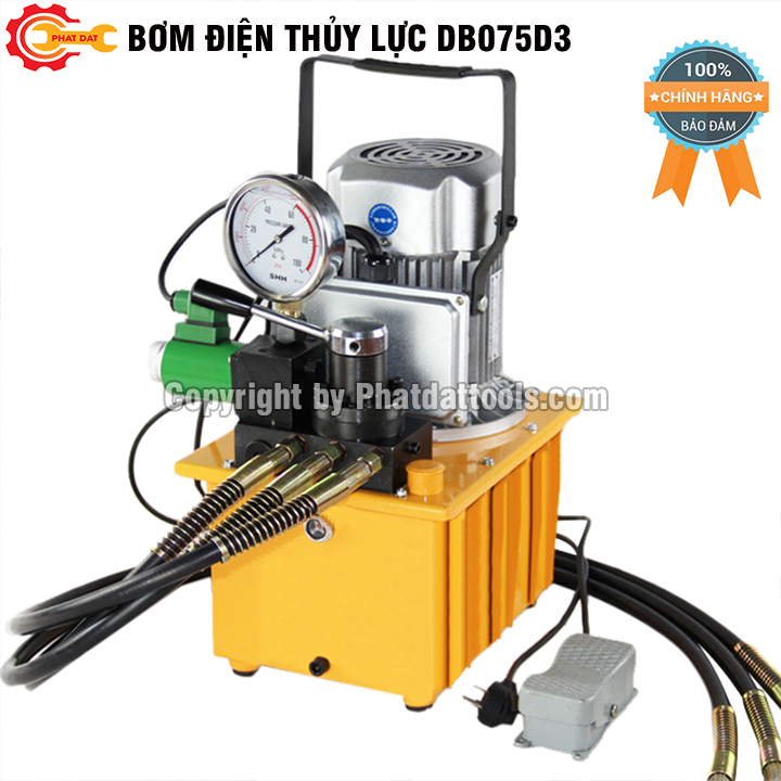 Bơm Điện Thủy Lực DB075D3 hay còn gọi là bộ nguồn thủy lực,trạm nguồn thủy lực,là một thiết bị bơm đẩy dầu thủy lực với áp suất lớn đến các thiết bị thủy lực như kích thủy lực,máy đột lỗ ,cắt,uốn,ép cos...