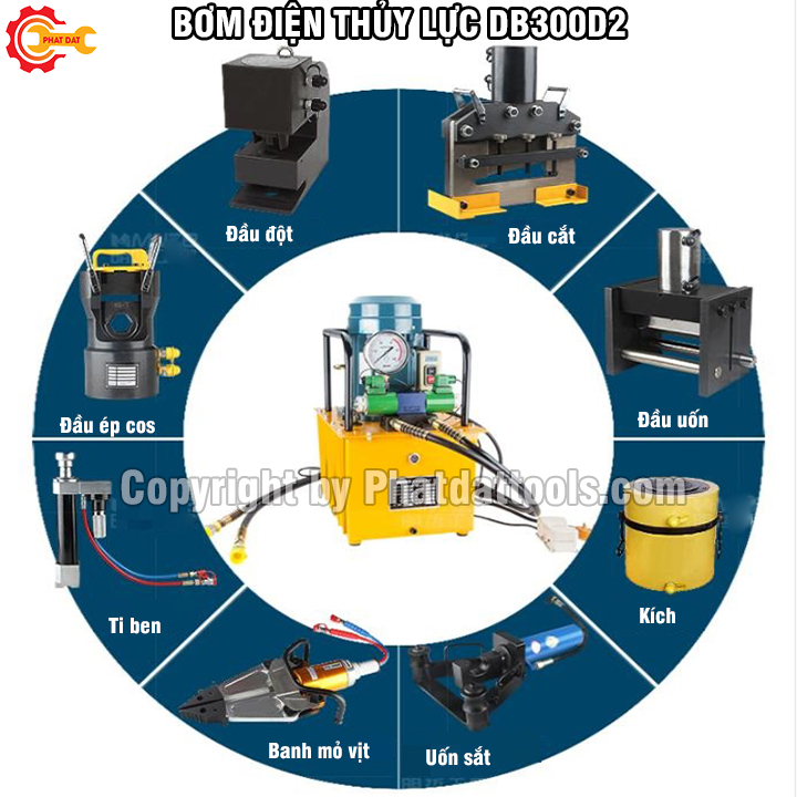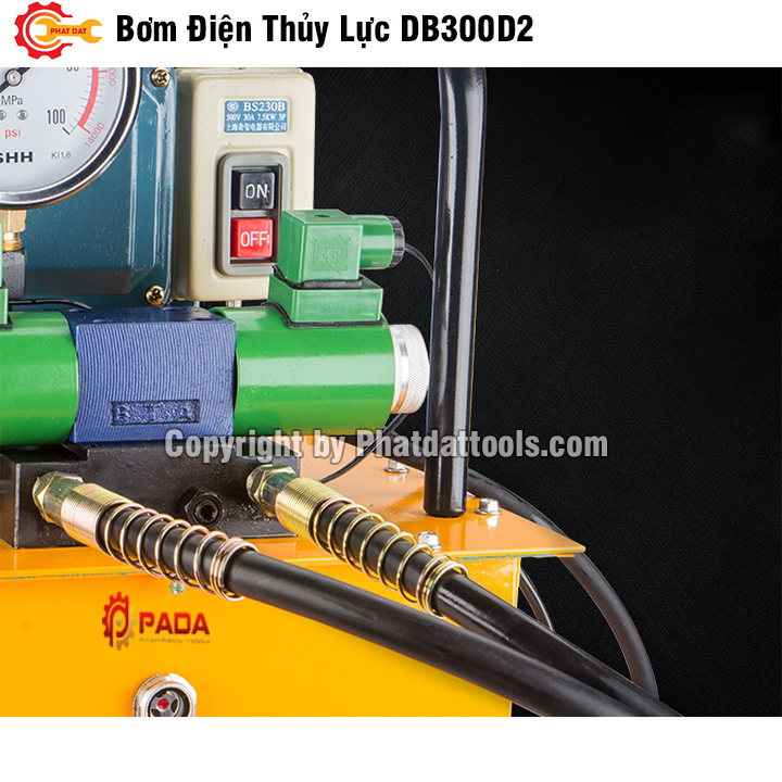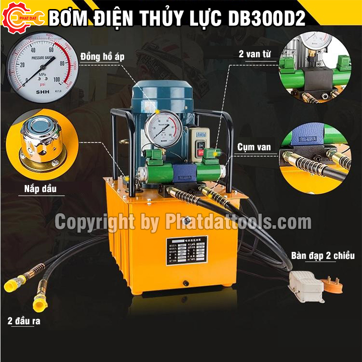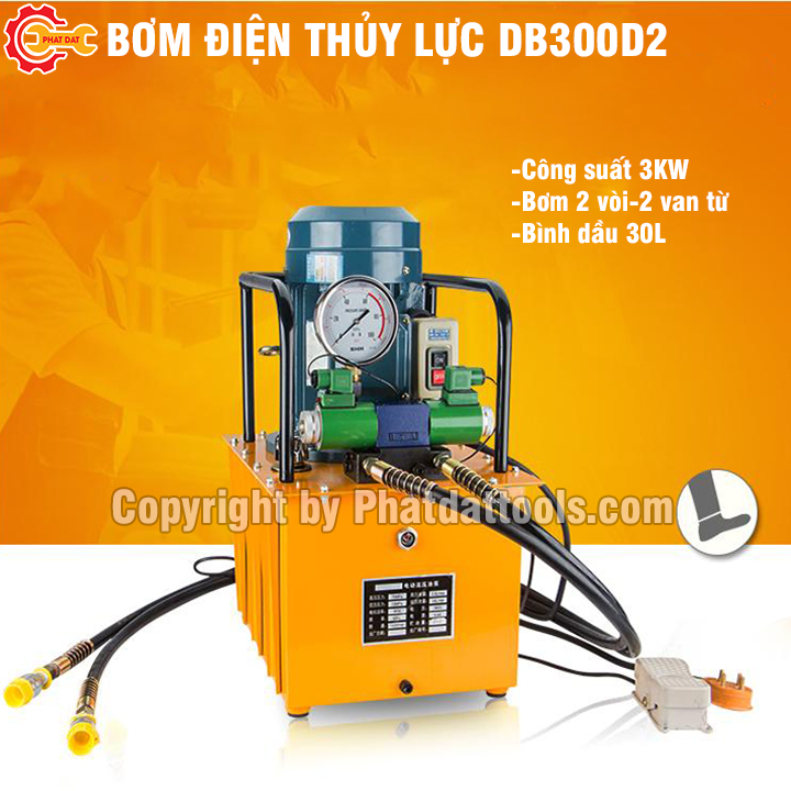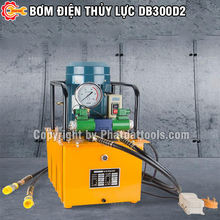 Bơm Điện Thủy Lực DB300D2 là dòng bơm thủy lực một 2 vòi,2 van từ,phù hợp lắp cho các dòng máy thủy lực 2 đường dầu như :máy đột lỗ thủy lực CH75,CH80,cắt V CAC160, và các dòng kích thủy lực,ti ben 2 đường dầu...