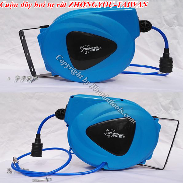 Cuộn dây hơi khí nén tự rút được sản xuất bởi hàng ZHONGYOU Đài Loan,là sản phẩm chất lượng, chất liệu cao cấp, chịu được áp lực cao và được nhiều người tin dùng, đặc biệt trong các Head Honda.