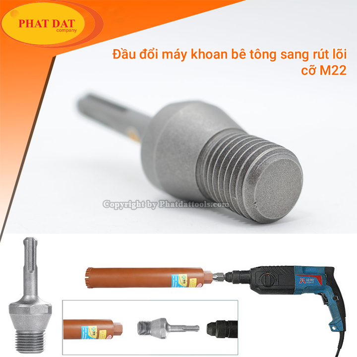 Đầu chuyển đổi mũi khoan rút lõi sang máy khoan cầm tay chuyên dụng trong thi công cầu đường,điện nước,điều hòa...Giúp chuyển đổi nhanh mũi khoan rút lõi sang lắp cho các loại máy khoan,máy khoan đục cầm tay với đầu gài SDS Plus.