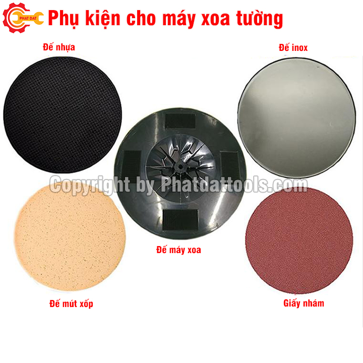 Đế xoa cho máy xoa vữa trát tường là phụ kiện tiêu hao chuyên dụng có thể lắp vừa với hầu hết các dòng máy xoa vữa trát tường hiện nay trên thị trường.Đường kính đế 390mm giúp xoa phủ bề mặt rộng,nhanh chóng.Mặt sau gắn dính 4 điểm chắc chắn.