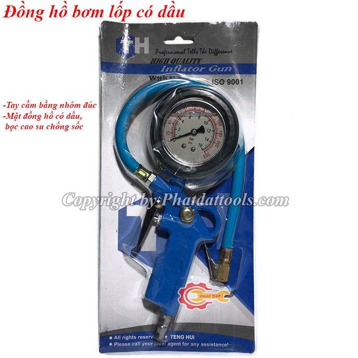 Đồng hồ bơm lốp có dầu với tay cầm bằng nhôm đúc cao cấp,cầm nắm rất êm tay,mặt đồng hồ hiển thị chính xác giúp kiểm soát áp suất lốp khi bơm.