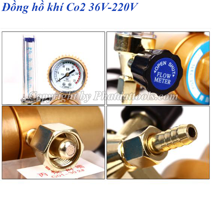 Đồng hồ khí Co2 36V-220V được làm bằng chất liệu đồng thau,đồng hồ bọc cao su chống sốc,hệ thống đo lường chính xác,vận hành bền bỉ,tiêu thụ điện năng thấp.