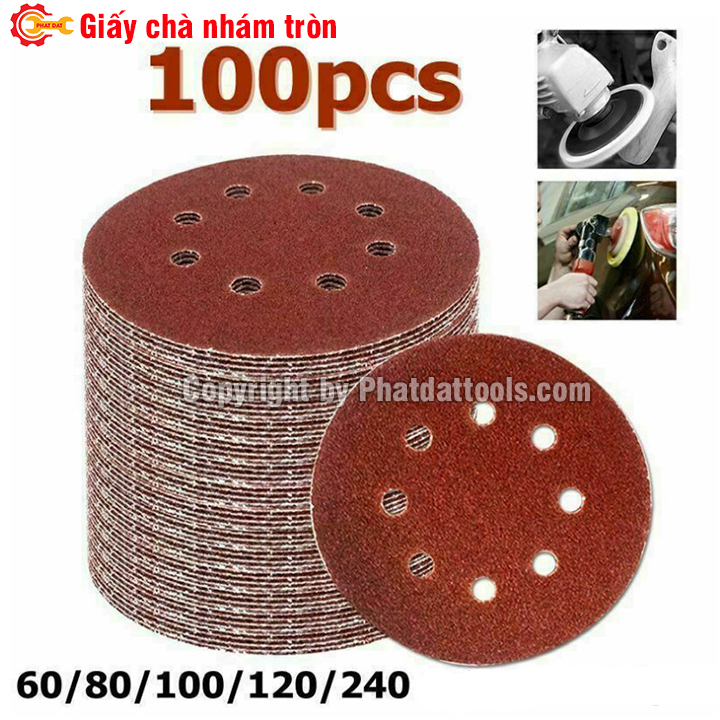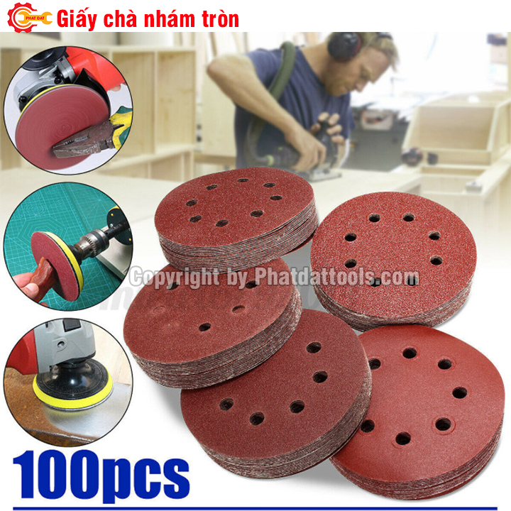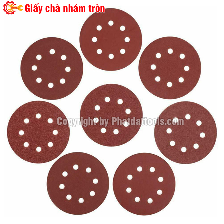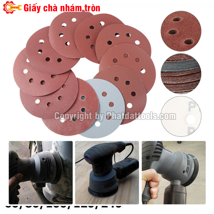 Giấy chà nhám tròn các phi 125-180-230mm là phụ kiện tiêu hao chuyên dụng lắp cho các dòng máy chà nhám,đánh bóng,chà tường làm sơn bả...