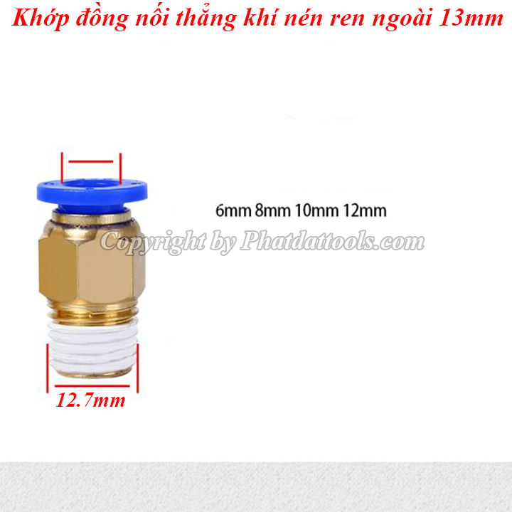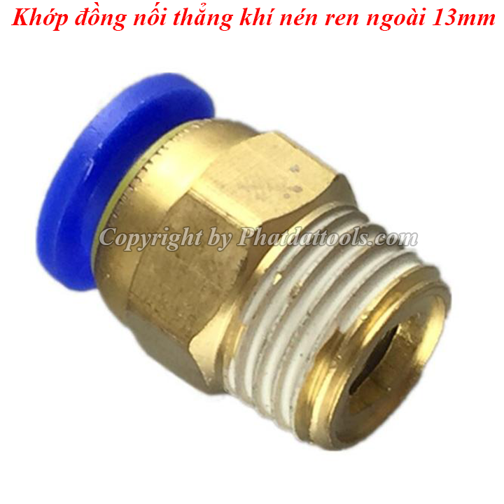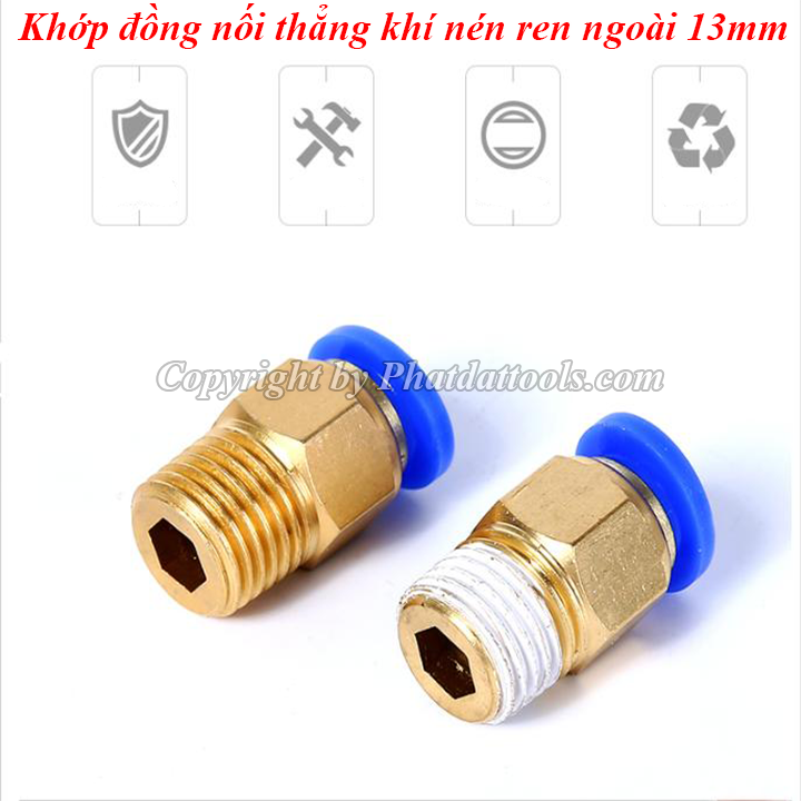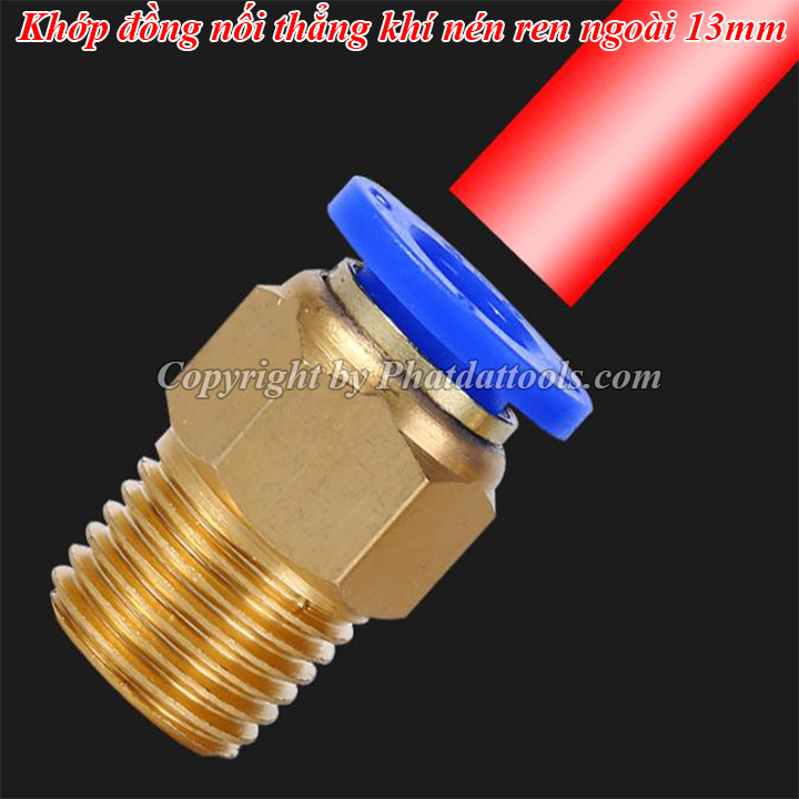 Khớp đồng nối thẳng khí nén 1 đầu ren 13mm với chất liệu đồng và nhựa PU cao cấp cho độ bền cao,khả năng chịu áp lớn.