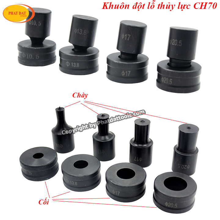 Bình thường khi mua máy đột lỗ thủy lực CH70 sẽ được tặng kèm theo 4 bộ khuôn đột phi 10.5-13.8-17-20.5