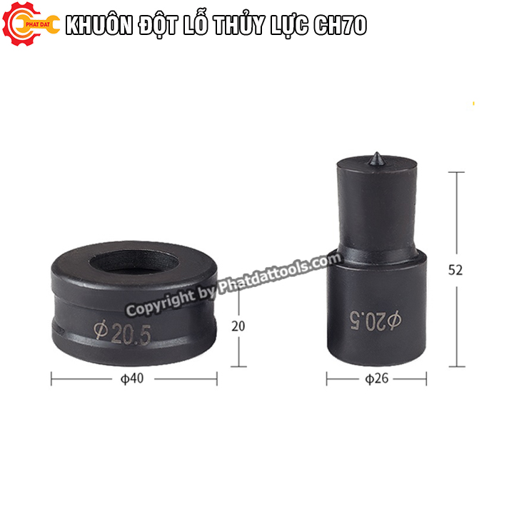 Bình thường khi mua máy đột lỗ thủy lực CH70 sẽ được tặng kèm theo 4 bộ khuôn đột tròn phi 10.5-13.8-17-20.5