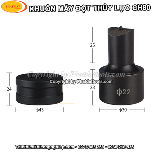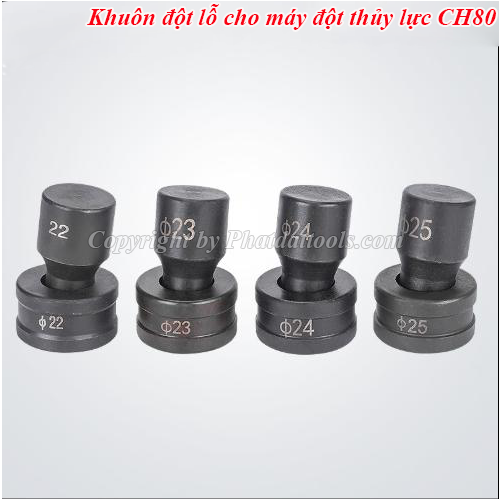 Bình thường khi mua máy đột lỗ thủy lực CH80 sẽ được tặng kèm theo 4 bộ khuôn đột tròn :Φ16 – Φ18 – Φ22 – Φ25