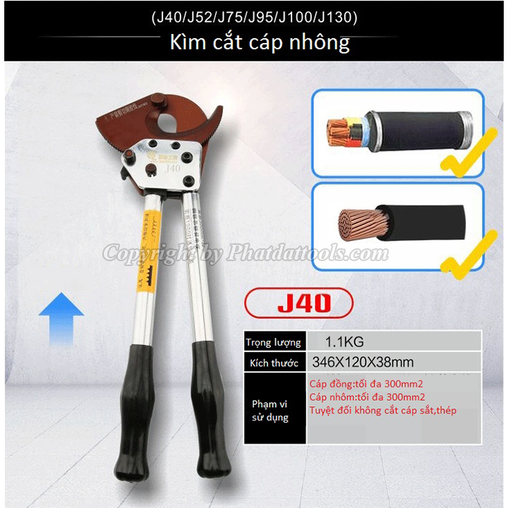 Thông số kĩ thuật Kìm cắt cáp nhông J40: