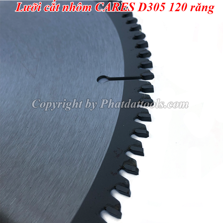 Lưỡi cắt nhôm CARES D305 120 răng có phần lưỡi làm bằng hợp kim thép cao cấp độ cứng cao,khả năng chịu mài mòn cao,quy trình hàn lưỡi bằng bột đồng tự động 100%.Khâu kiểm duyệt độ cân bằng nghiêm ngặt giúp cho chất lượng sản phẩm gia công có độ chính xác cao,đẹp.