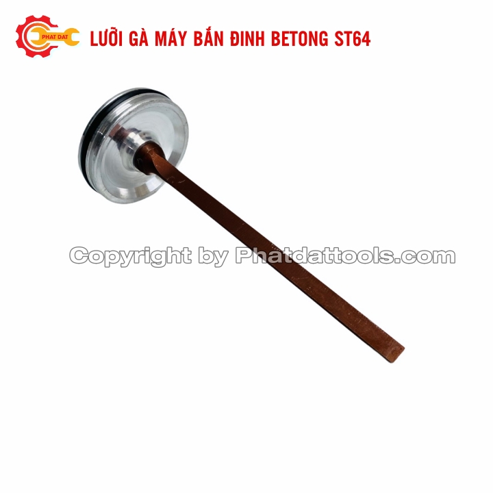 Lưỡi gà máy bắn đinh betong ST64 được làm bằng chất liệu thép cao cấp cho độ cứng cao,chống mài mòn,chùn lưỡi trong quá trình sử dụng,tăng độ bền sản phẩm.Lưỡi có thể lắp vừa hầu hết các dòng máy bắn đinh betong ST64 trên thị trường.