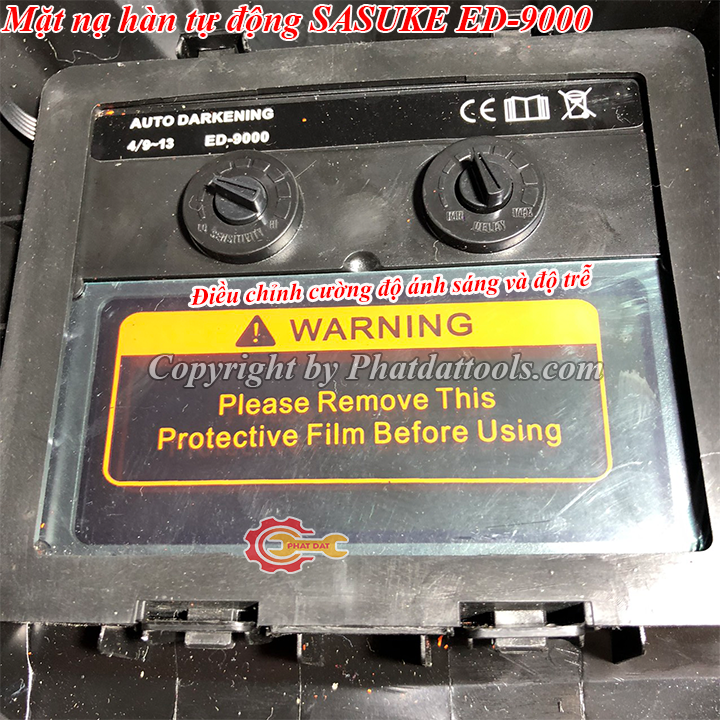 Mặt nạ hàn điện tử tự động SASUKE ED-9000 có núm điều chỉnh cường độ ánh sáng,độ trễ phù hợp với nhiều yêu cầu công việc,mặt nạ có đai ôm đầu điều chỉnh được,gạt lên gạt xuống dễ dàng.