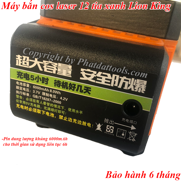 Máy bắn cos laser 3D 12 tia xanh LION KING sử dụng pin Li-ion tích hơp nguyên khối 6000mAh cho thời gian sử dụng dài,tuổi thọ cao. Bên máy có lỗ cắn sạc cho máy hoặc cắm điện sử dụng trực tiếp cho máy đều được. Đảm bảo được thời gian làm việc cho máy.