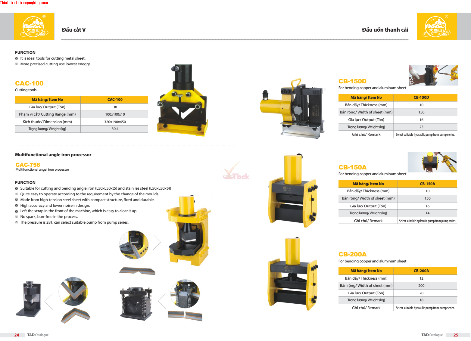 Máy cắt sắt V thủy lực CAC100 có thể dung kết hợp với Bơm tay thủy lực hoặc Bơm điện thủy lực