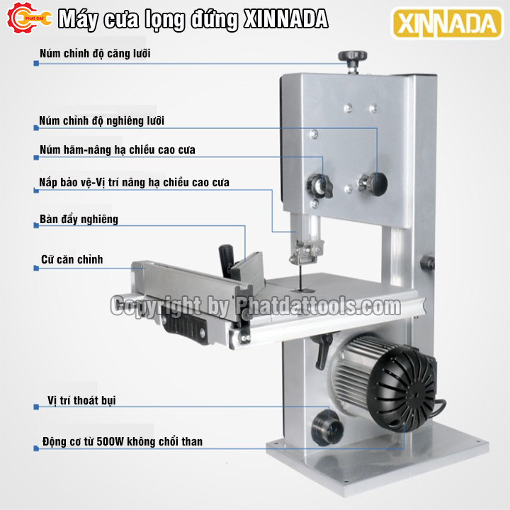 Máy Cưa Lọng Đứng XINNADA D9S sử dụng động cơ từ công suất 500W cho hiệu quả vận hành ổn định,êm ái,độ bền cao.