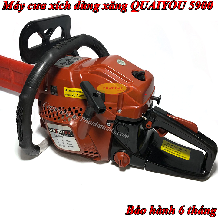 Máy cưa xích xăng QUANYOU QY 5900 chuyên dụng cắt xẻ cây,gỗ...thuận tiện ở mọi điều kiện sử dụng do dùng động cơ xăng 2 thì.