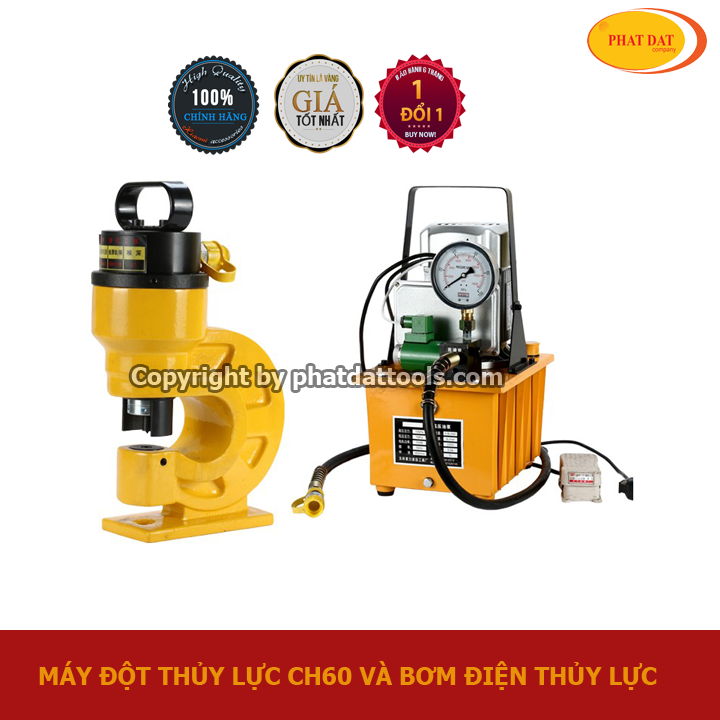Máy Đột Lỗ Thủy Lực CH60 và Bơm điện thủy lực HHB700A chuyên dùng đột bản nhôm hoặc thanh đồng cái.Máy đột lỗ thủy lực được ứng dụng rộng rãi trong việc sản xuất tủ điện, thang máng cáp điện,đột thanh sắt cái