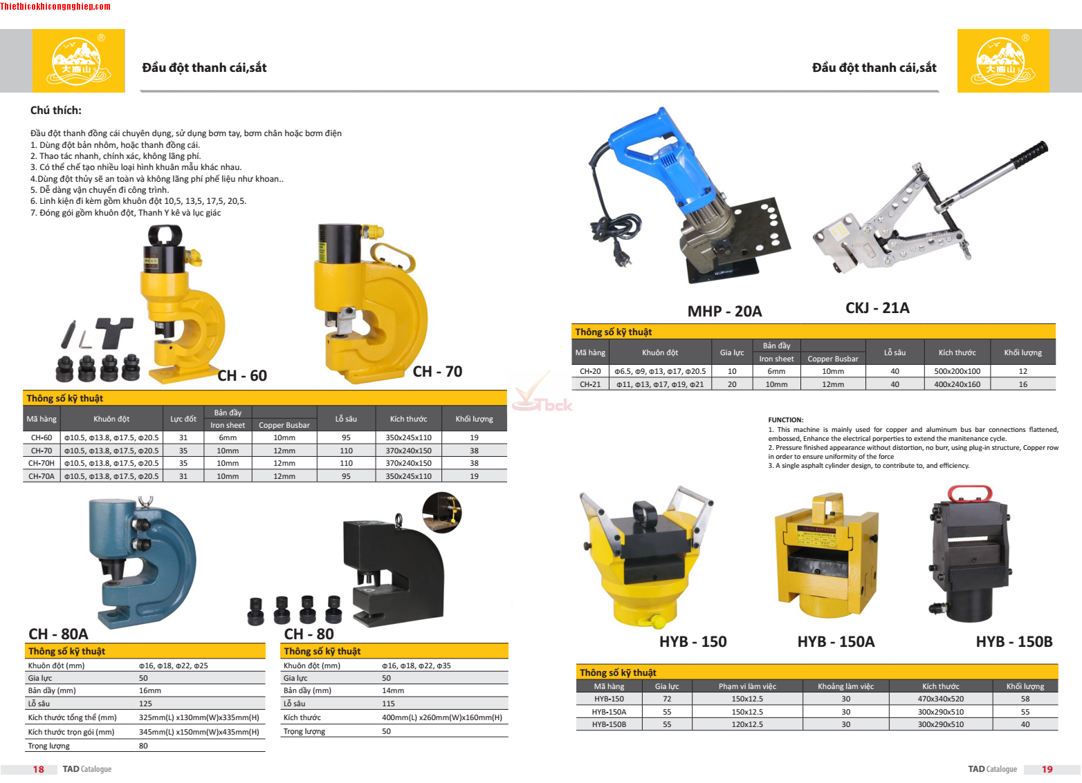Máy Đột Lỗ Thủy Lực CH60 và Bơm tay thủy lực CP700 chuyên dùng đột bản nhôm hoặc thanh đồng cái.Máy đột lỗ thủy lực được ứng dụng rộng rãi trong việc sản xuất tủ điện, thang máng cáp điện,đột thanh sắt cái