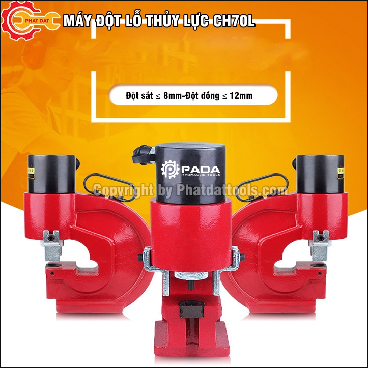 Máy Đột Lỗ Thủy Lực CH70L là dòng máy đột tạo lỗ trên bề mặt kim loại như :Đồng,nhôm,sắt thép,inox...Máy hoạt động dựa trên hệ thống xilanh,piston thủy lực nên cho lực đột lớn mà vẫn nhỏ gọn,phù hợp sử dụng đi công trình hay tiết kiệm diện tích nhà xưởng hơn nhiều so với các dòng máy đột cơ.Máy đột lỗ thủy lực được ứng dụng rộng rãi trong việc sản xuất tủ điện, thang máng cáp điện,đột thanh sắt cái,gia công cơ khí...