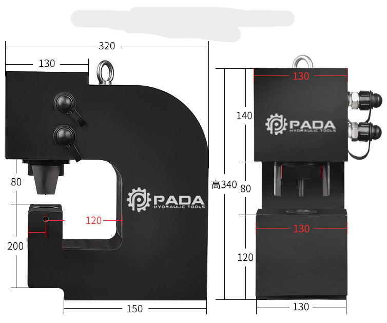 Máy đột lỗ thủy lực CH80H có lực đột 50T dễ dàng đột được tôn sắt thanh đồng dày 16mm.Các khuôn đột chuẩn của máy đột thủy lực Ch80h là ф16 - ф18 – ф22- ф25.