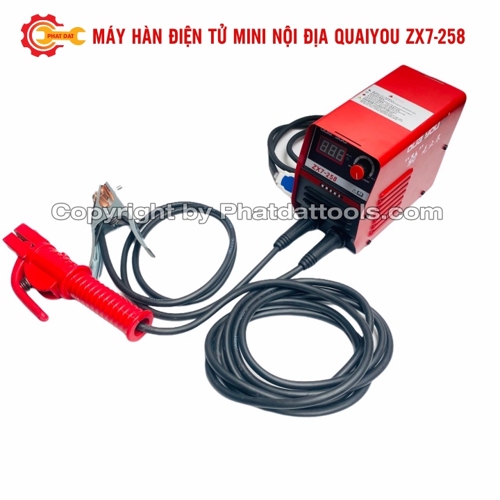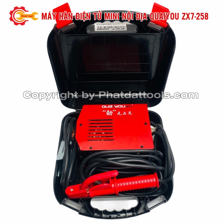Máy hàn điện tử mini QUANYOU ZX7-258 với dải dòng hàn 60-140A,có khả năng hàn que 1.6-3.2 ly,hàn liên tục cả ngày với que 2.5ly,hàn tốt que 3.2ly mức độ vừa phải.Vỏ máy có kết cấu chắc chắn,có dây đeo thuận tiện di chuyển.Máy đi kèm có hộp nhựa chắc chắn.