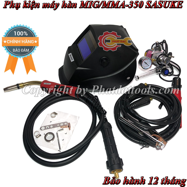 Phụ kiện đi kèm:Súng Mig 24KD 4m,Kìm hàn 300A 5m,Kẹp mát 3m,Đồng hồ khí CO2 36V,phụ kiện bép hàn-Đặc biệt khi mua sản phẩm của công ty sẽ được tặng kèm mặt nạ hàn điện tử SASUKE ED4400