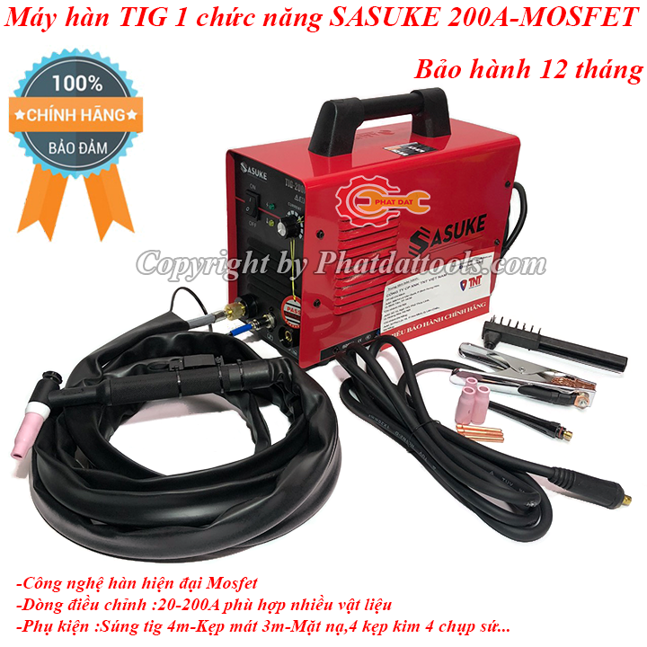 Máy hàn TIG 200A SASUKE chuyên dụng hàn vật liệu inox,kim loại màu,là dòng máy hàn 1 chức năng TIG duy nhất dành cho những thợ chuyên nghiệp.