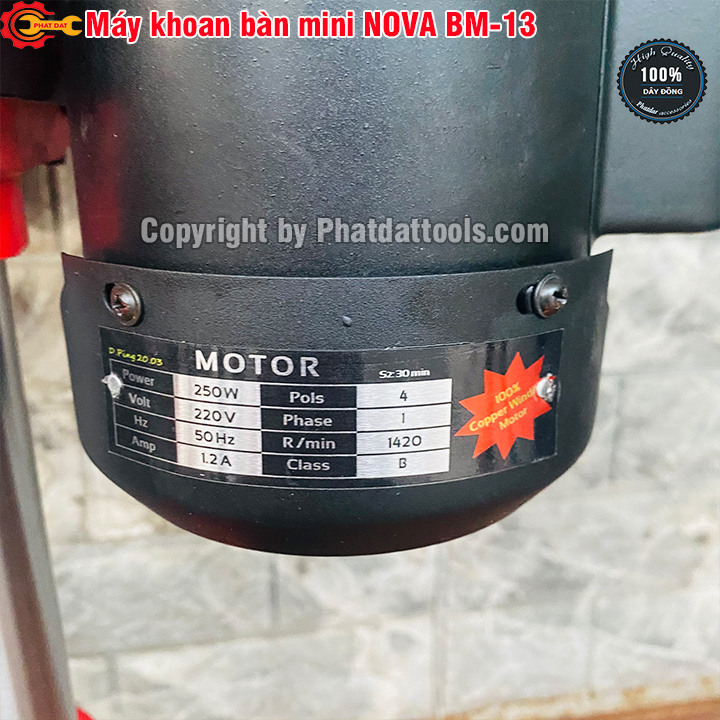 Máy Khoan Bàn NOVA BM-13 được chế tạo trên dây chuyền hiện đại và tiên tiến Châu Âu,kết cấu máy chắc chắn,dầy dặn,máy chạy êm,không rung lắc trong quá trình sử dụng,động cơ 1/3HP 100% dây đồng chạy ổn định,độ bền lớn.