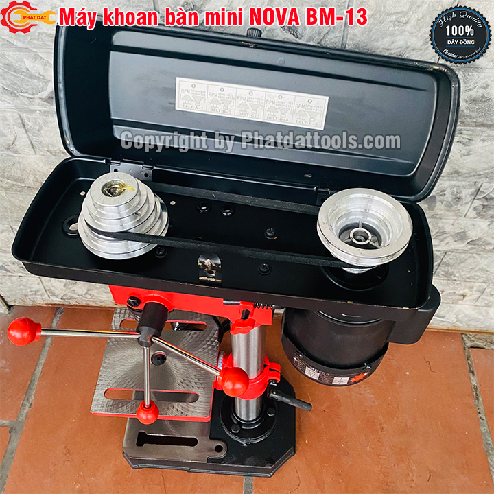 Máy Khoan Bàn NOVA BM-13 sử dụng hệ thống truyền động và cơ cấu thay đổi tốc độ bằng các pulley 5 tầng nối nhau bằng dâu cura.cách sử dụng máy đơn giản và tuyệt đối an toàn.Chuyển đổi tốc độ tùy thuộc vào vật liệu khoan,tốc càng chậm thì cho momen xoắn càng cao và ngược lại.