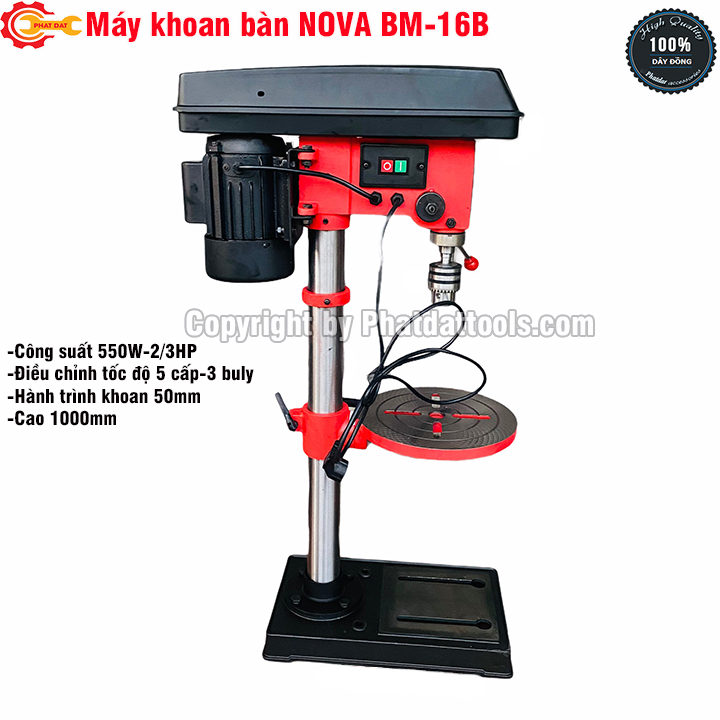 Máy Khoan Bàn NOVA BM-16B là dòng máy khoan được sử dụng rộng rãi trong các xưởng cơ khí,chế tạo,DIY chuyên dụng để gia công lỗ khoan trên kim loại và nhiều loại vật liệu khác với độ chính xác cực cao.