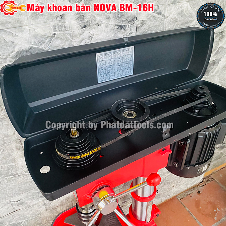 Máy Khoan Bàn NOVA BM-16B sử dụng hệ thống truyền động và cơ cấu thay đổi tốc độ bằng 3 pulley nối nhau bằng dây cura,cách sử dụng máy đơn giản và tuyệt đối an toàn.Chuyển đổi tốc độ tùy thuộc vào vật liệu khoan,tốc càng chậm thì cho momen xoắn càng cao và ngược lại.