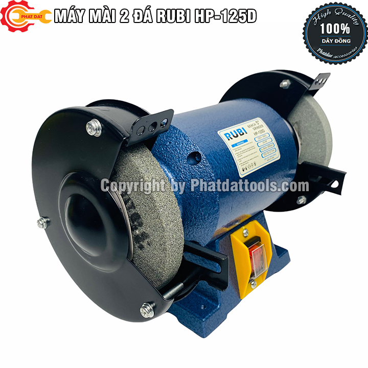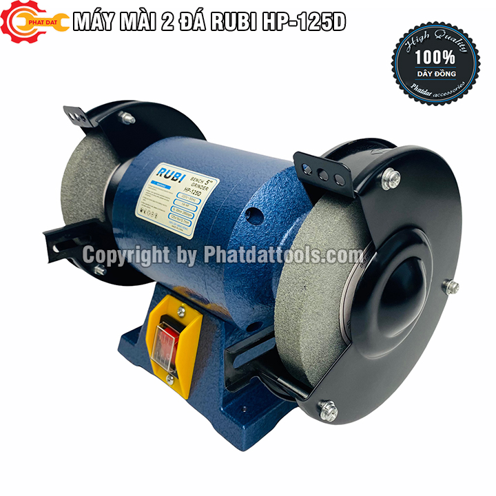 Máy Mài 2 Đá RUBI HP-125D chuyên dụng trong chế tạo cơ khí,sửa chữa máy móc,ô tô,xe máy... Máy có thể gia công được các chi tiết khó, cần độ chính xác và độ bóng cao mà ít tốn nguyên vật liệu.