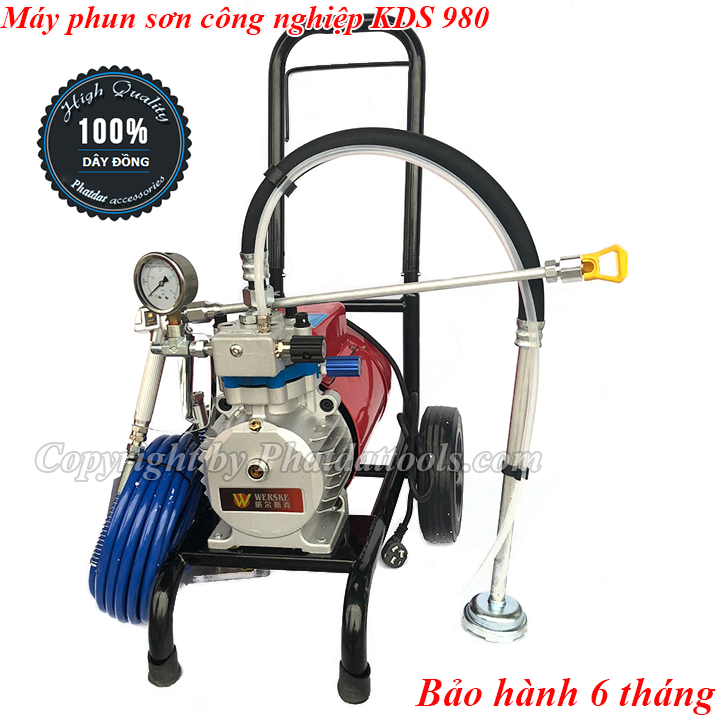 Máy phun sơn công nghiệp KDS 980 là dòng máy phun sơn chuyên dụng có thể phun được tất cả các loại sơn như :sơn dầu,sơn tường,sơn chống thấm,Epoxy,sơn kết cấu...