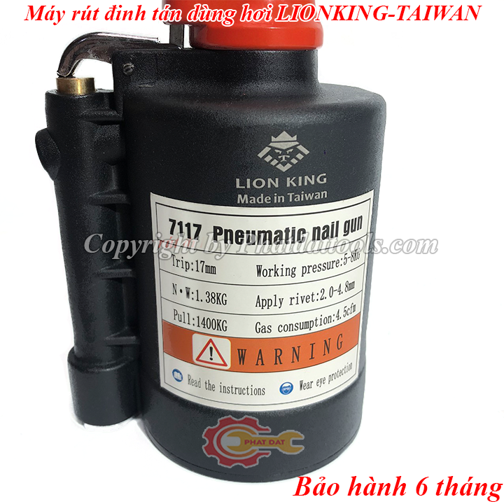 Máy rút đinh tán dùng hơi LIONKING-TAIWAN có bầu chứa đinh phía sau tiện dụng,thao tác tháo lắp nhanh,dễ bảo dưỡng.Bình chứa khí lớn thiết kế dạng đứng cho lực rút lớn 1400kg,chỉ với 1 lần bóp cò là đứt đinh,rất nhanh chóng.
