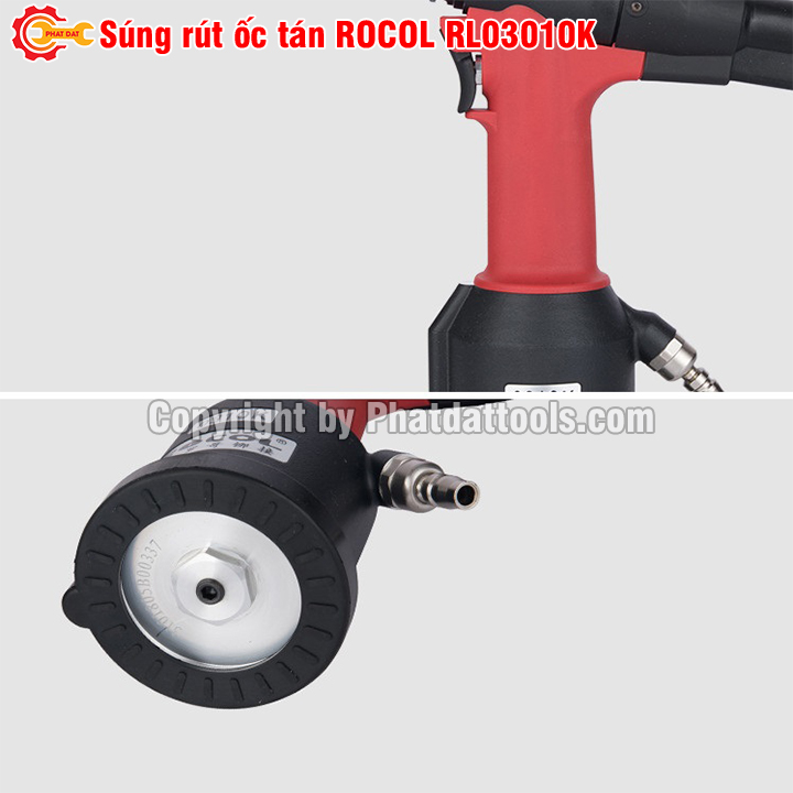 Máy rút ốc tán dùng hơi ROCOL R0310 có phần điều chỉnh lực rút cho phù hợp với độ dày của tấm vật liệu nên bạn không cần phải lo bắn quá tay ốc bị đứt ren, cháy ren.