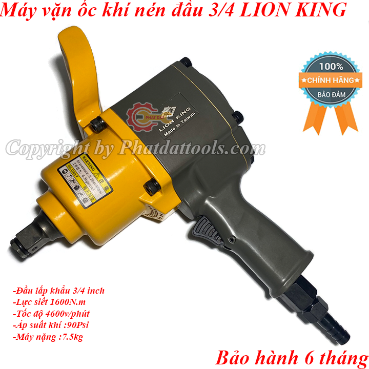 Máy siết ốc dùng hơi cỡ lớn LION KING đầu 3/4 là dòng máy siết mở ốc,bulong đầu lắp khẩu cỡ lớn 3/4",chuyên dụng trong chế tạo máy,sửa chữa ô tô,máy công trình...