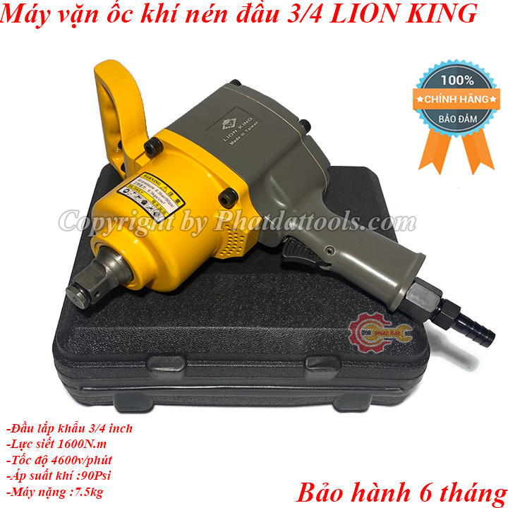 Máy siết ốc dùng hơi cỡ lớn LION KING đầu 3/4 được sản xuất trên dây chuyền công nghệ hiện đại của Đài Loan,cho độ bền tốt,ít hư hỏng vặt,độ ổn định cao,giá thành cạnh tranh.