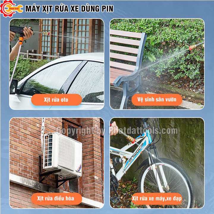 Thông thường,khi xịt rửa xe cộ,sân vườn,vệ sinh nhà cửa và các đồ dùng,chúng ta thường dùng các thiết bị như máy bơm,máy xịt rửa xe cao áp chạy điện.Tuy nhiên,do việc phải sử dụng nguồn điện nên rất bất tiện như khi đi du lịch,cắm trại,xịt rửa ở những vị trí cao,chật hẹp,ẩm ướt gây mất an toàn.Chính vì vậy,công ty chúng tôi cung cấp đến các bạn một sản phẩm vô cùng tiện ích,gọn nhẹ,an toàn :Máy Xịt Rửa Xe Dùng Pin.