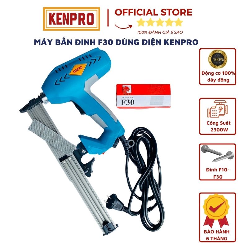 Súng Bắn Đinh Gỗ F30 Dùng Điện KENPRO được thiết kế nhỏ gọn,nhẹ,chuyên dụng trong các ngành sản xuất công nghiệp, đóng thùng gỗ chứa hàng,pallet,nội thất(đóng giường tủ,bọc sofa,bọc yên xe...). Súng Bắn Đinh Gỗ F30 Dùng Điện KENPRO có thể bắn ra liên tục đinh giúp bạn nhanh chóng hoàn thành công việc trong thời gian ngắn,tăng hiệu quả làm việc.