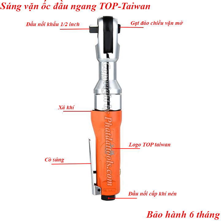 Súng vặn ốc khí nén đầu ngang TOP là dụng cụ cầm tay chuyên dụng dùng để siết,mở các loại ốc,bulong thông dụng một cách dễ dàng,nhanh chóng.