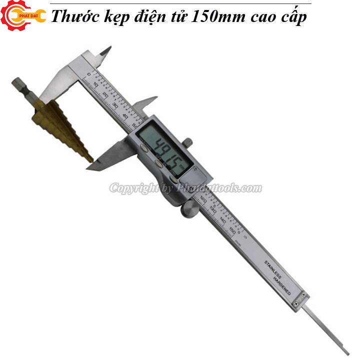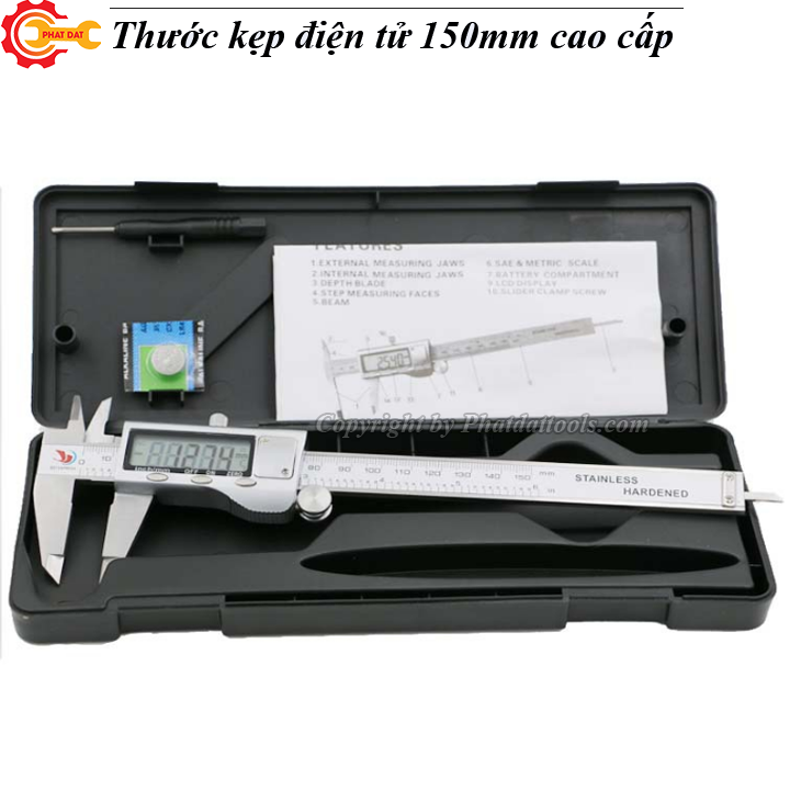 Thước Cặp Điện Tử 150mm Thép Không Gỉ được tích hợp hệ thống đo điện tử,kết quả đo được đọc theo cách thông thường hoặc hiển thị chính xác trên màn hình điện tử,với sai số rất nhỏ :0.01-0.02mm.Đơn vị đo chuyển đổi inch-mm