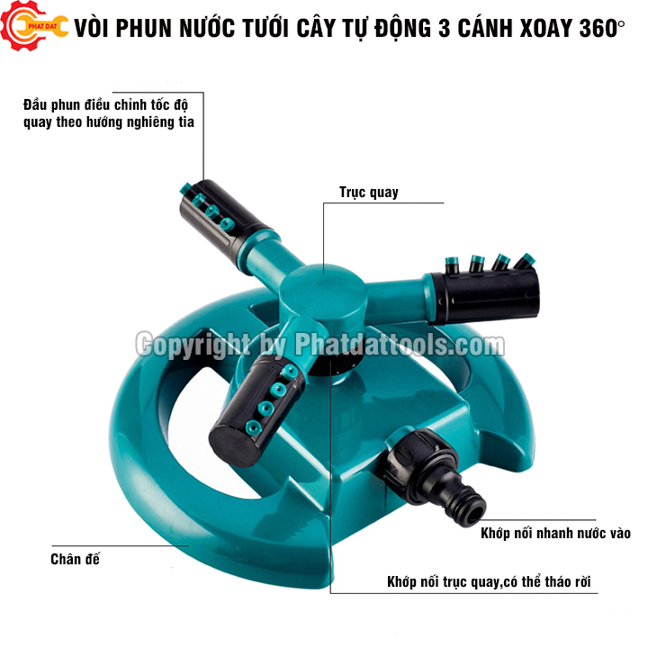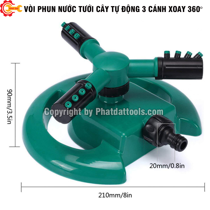 Thông số kĩ thuật Vòi Phun Nước Tưới Cây Tự Động 3 Cánh (Đế Tròn):